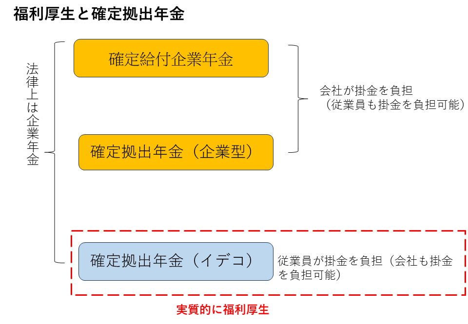 - iDeCoは企業年金と福利厚生の両方の役割がある