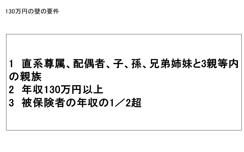- 年間収入が130万円を超えると、健康保険・年金の「被扶養者」から外れる