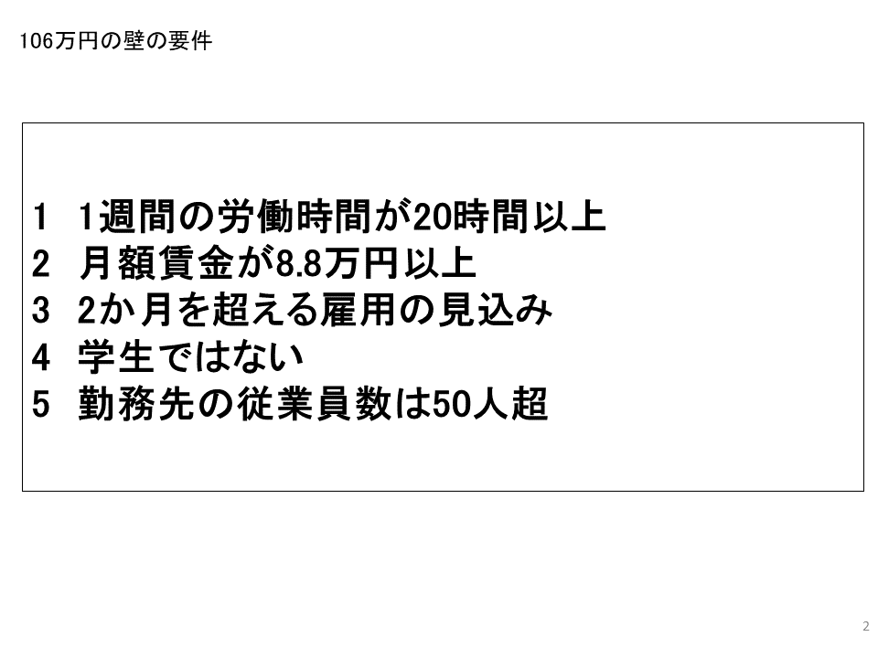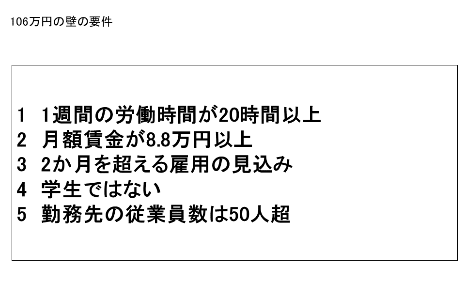 - 106万円の壁は月額賃金8.8万円以上で50人超の会社が対象