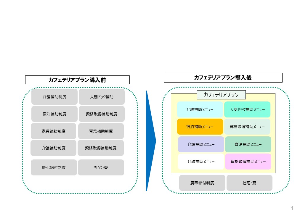 今までは、追加ごとに新制度の同意・予算管理が必要だったものが、カフェテリアプランならメニュー追加だけで対応でき、摩擦が生じにくくなります。