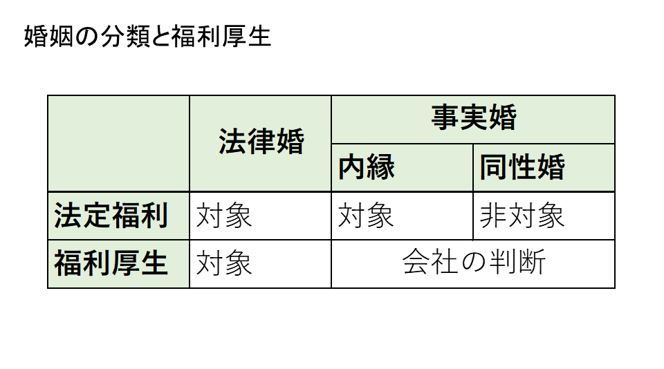- 福利厚生において事実婚は配偶者として扱うことが妥当である