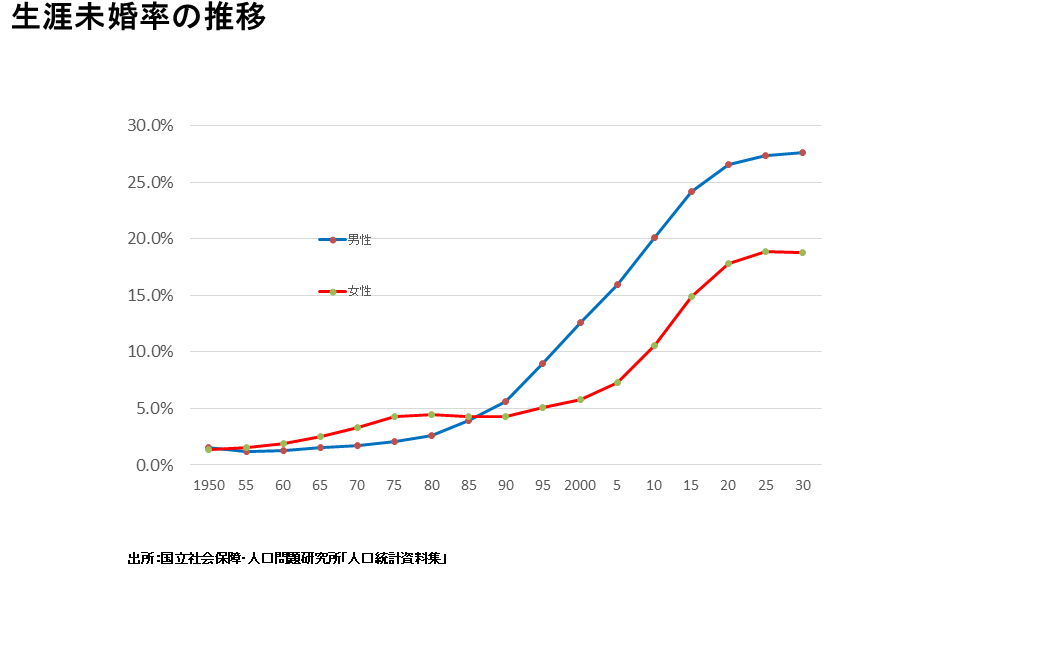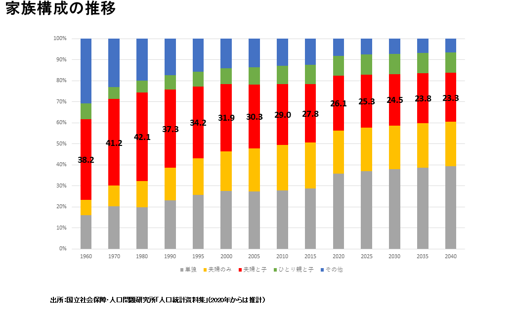 - 家族構成や未婚率の上昇など社会背景が大きく変化している