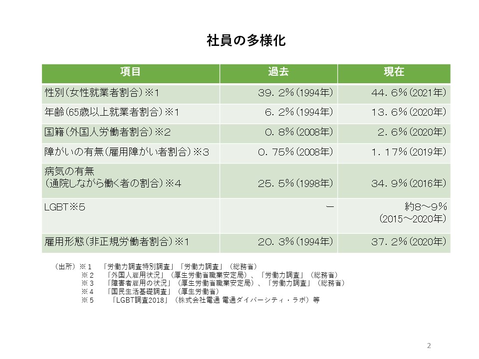 - 高齢者・非正規・病気治療・LGBTQなど、すべての社員が活躍できる制度が求められる