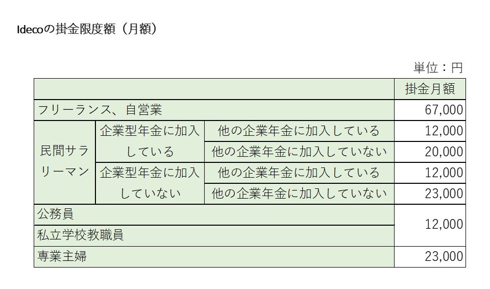 - 自営業・サラリーマン・公務員・主婦など、立場に応じた掛金の上限が異なる
