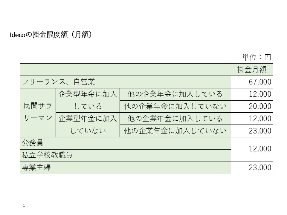 - 自営業・サラリーマン・公務員・主婦など、立場に応じた掛金の上限が異なる