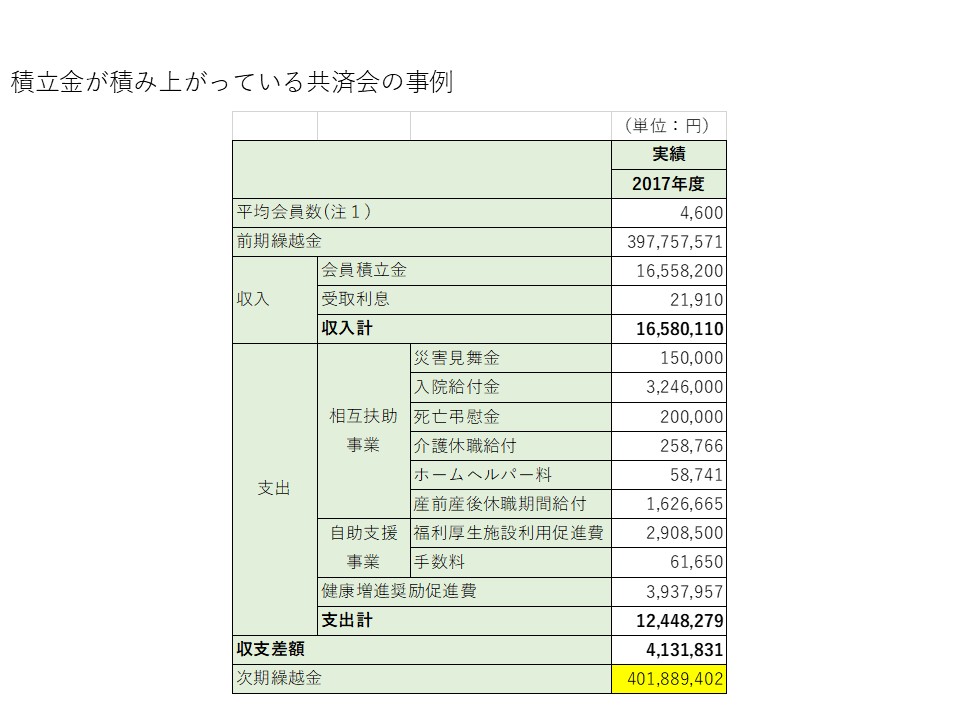 積立金が多すぎると、企業の利益の“ため込み問題”と同様に「会員への還元がなされない」と不満の種となります。