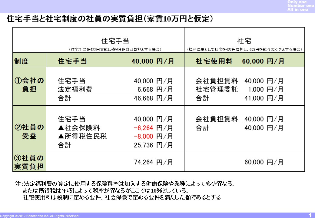 - 住宅手当と社宅制度でかかる社員の実質負担額