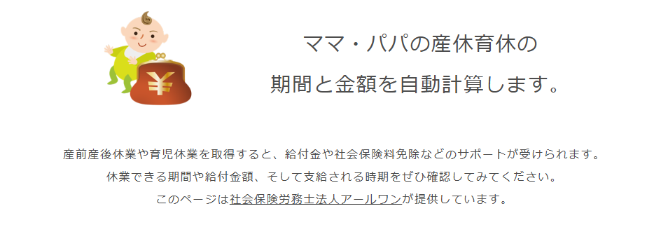 参考:産休・育児休業の期間と金額を自動計算|社会保険労務士事務所オフィスアールワン